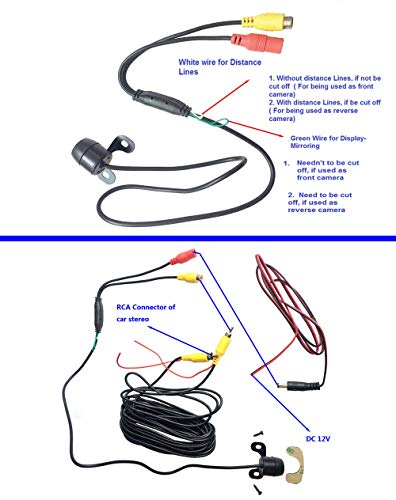 Deze camera is speciaal ontworpen om zowel als een voor- als achteruitrijcamera gebruikt te kunnen worden. Dit wordt mogelijk gemaakt door de aanpasbare triggerdraden; de groene draad voor Display-Mirroring en de witte draad voor afstandslijnen. Deze triggerdraden kunnen selectief worden afgestemd op basis van uw specifieke voorkeuren en behoeften.
