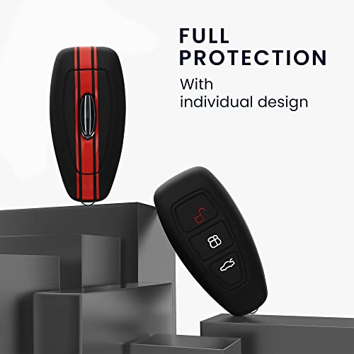 Specification: kwmobile autosleutel hoesje compatibel met Ford 3-knops autosleutel Keyless Go – Autosleutel behuizing in rood/zwart – Rallystrepen