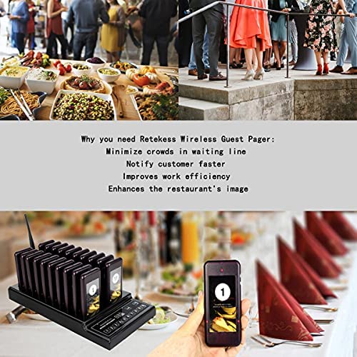 Specification: Retekess T112 Pager Restaurant Verbeterd Draadloos Gasten Oproepsysteem CE 20 Pager 999 Kanalen met Opladen Oproepend Toetsenbord voor Restaurant Eten Truck Food Court Snack Ziekenhuis