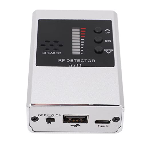 De Bugdetector – Model G638 is ontworpen met een frequentiebereik van 300MHz -2700MHz en een breed detectie dynamisch bereik om zelfs de meest subtiele signalen te vangen. Met de hoge nauwkeurigheid en de verbeterde alarmfuncties (geluids- en trilalarmen) gecombineerd met een LED-indicator, kunt u gemakkelijk en duidelijk op de hoogte worden gebracht zodra een signaal is gedetecteerd.