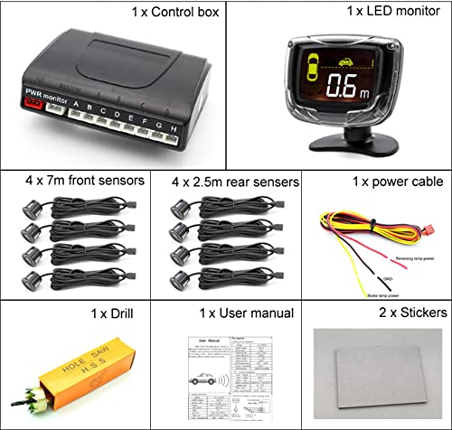 8 sensorsysteem, dubbele CPU en geavanceerde chipset voor verbeterde dekking en detectie (0-2,5m). Digitale kleur LED-display, die de afstand en richting tussen uw auto en de obstakels achter. Het LED-display geeft de rechter-, midden- en linkerkant aan.